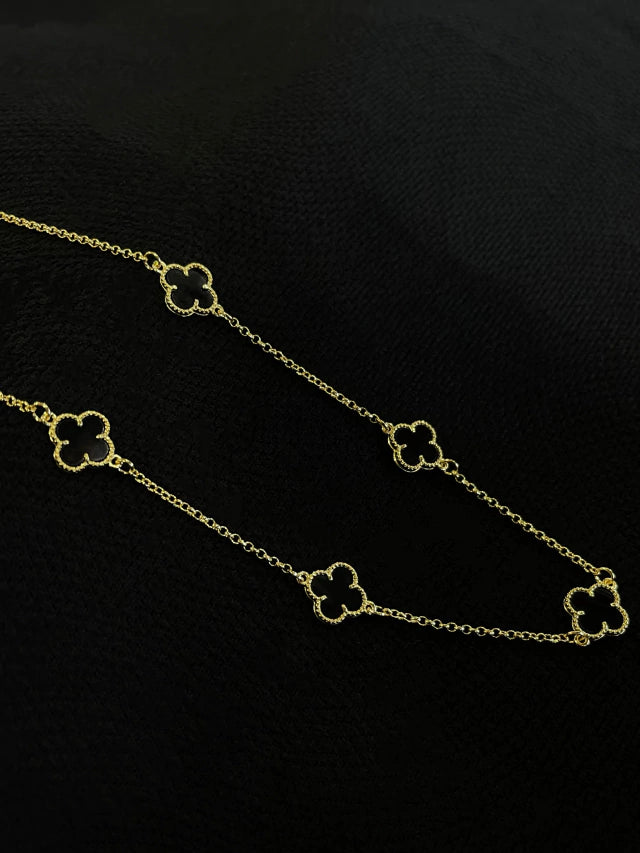 Kit Corrente + Pulseira Trevo Preto 2mm