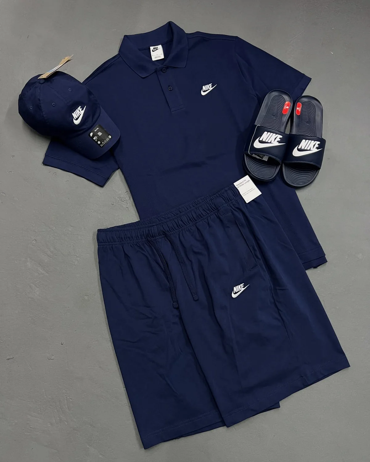 Kit NK com 1 polo, 1 short, 1 chinelo e 1 boné